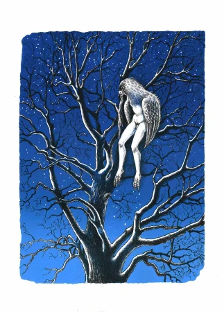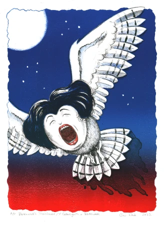 This series of four prints references the dark and magical story of Blodeuwedd, the woman made out of flowers, as told in the fourth branch of the Mabinogi.